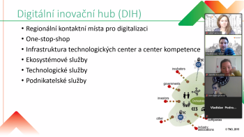 Poslední prezentace se týkala tzv. digitálních inovačních hubů (DIH). Marek Bureš v ní vysvětlil základní principy této nové aktivity Evropské komise, jejíž cílem je podporovat další investice do digitalizace průmyslu a podporovat vytváření lepších rámcových podmínek pro digitální průmyslovou revoluci. Zároveň představil Plzeňský DIH, jeho funkce a přínos pro firmy v Karlovarském kraji.
